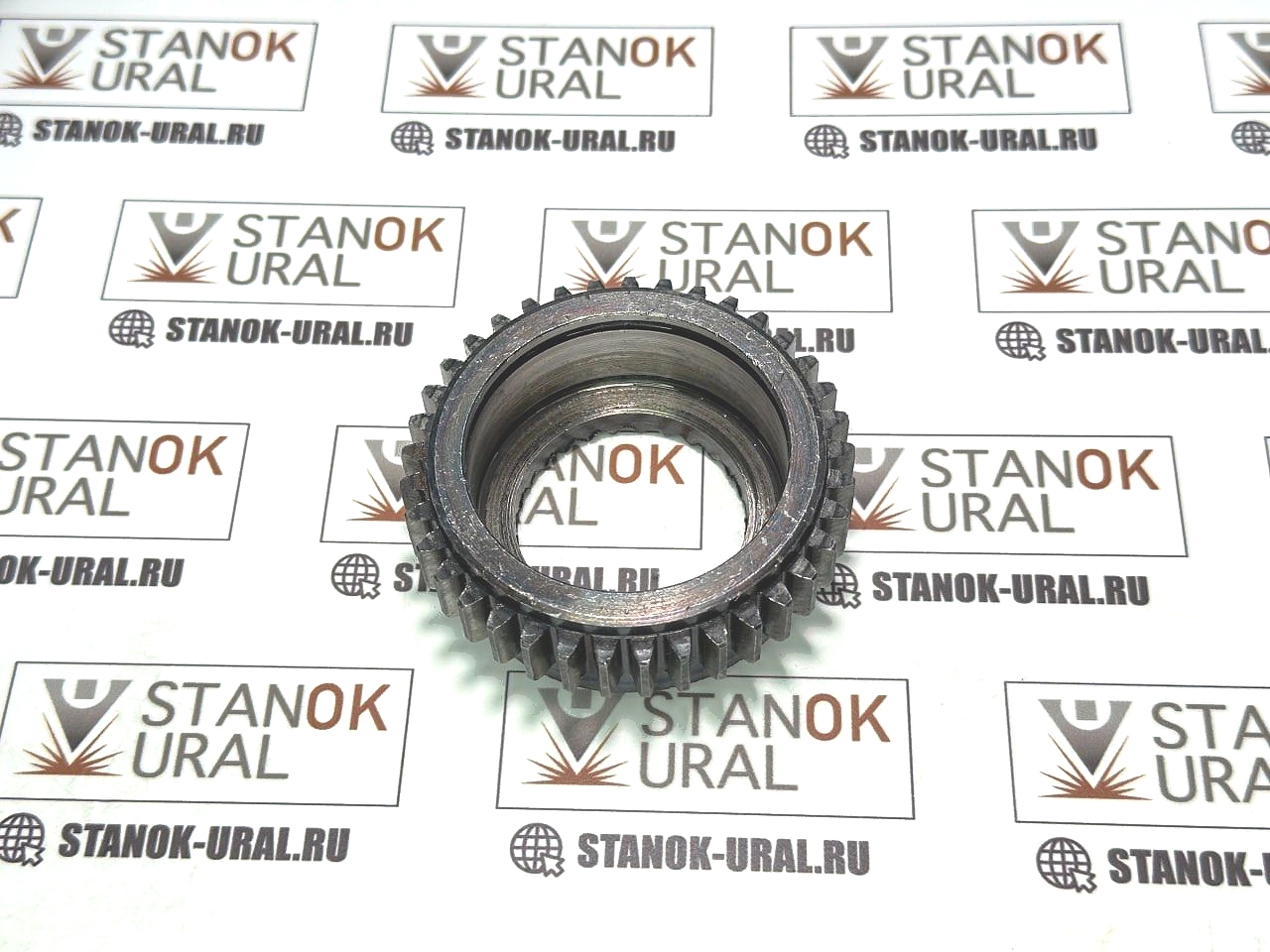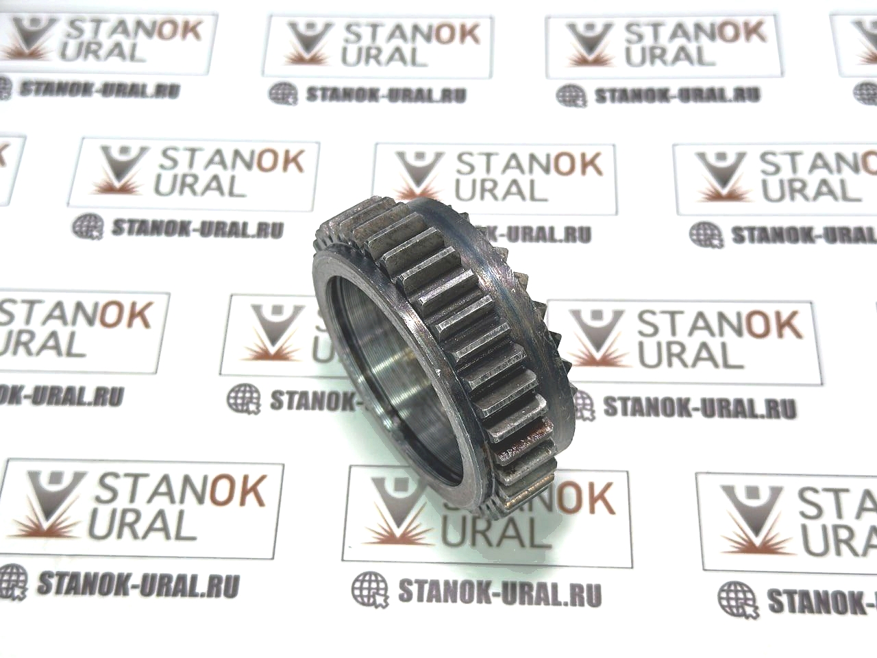 | Шестерня — муфта зубчатая устанавливается на вал продольной и вал поперечной подачи фартука. Изготовлена на токарном, зубодолбёжном станке, фрезерном стане. Устанавливается на подшипники, подпирается стопопорным кольцом. | |